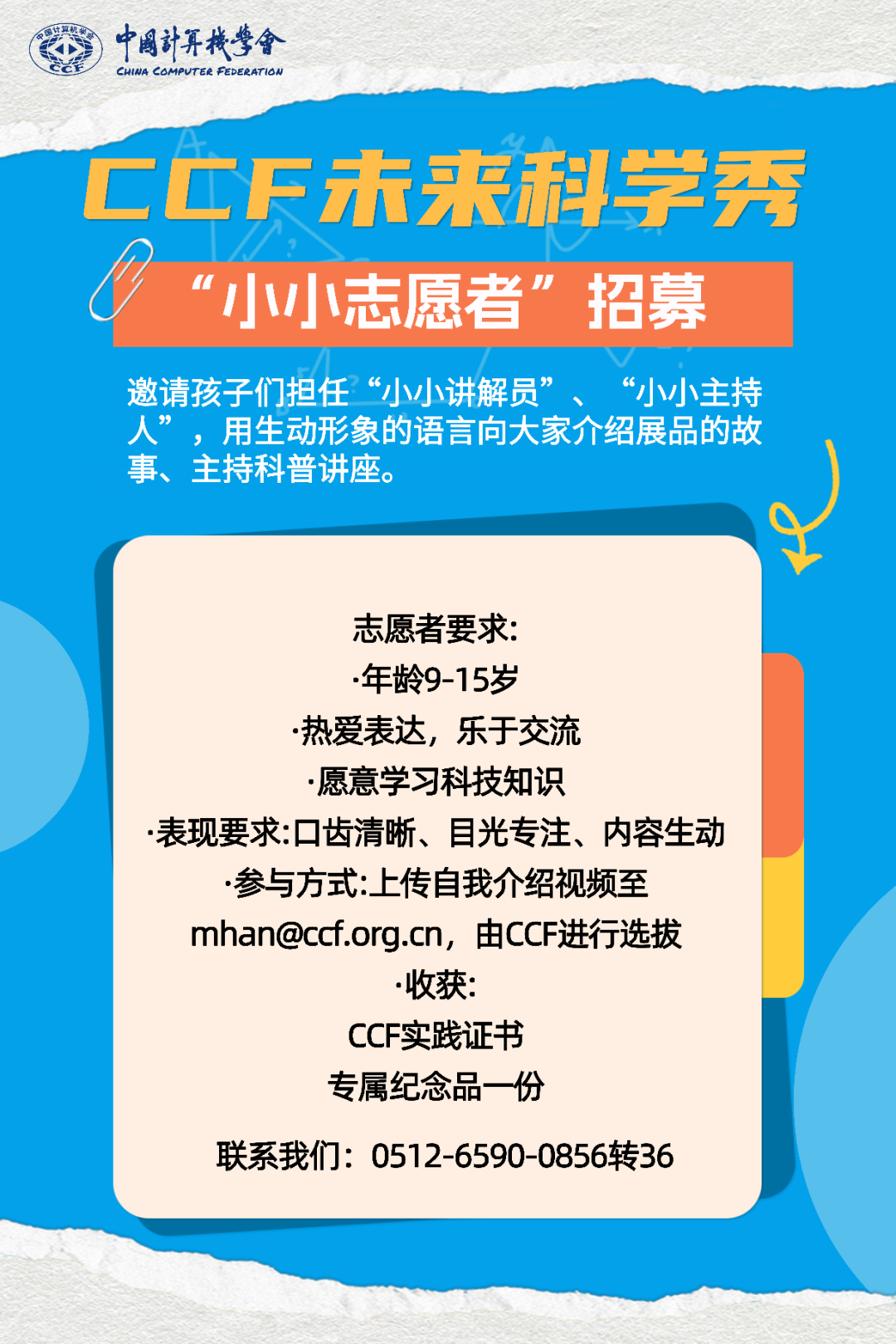*注:CCF未来科学秀及科普展厅开放日皆为公益活动不收费,小小主持人/讲解员同样不收取任何费用